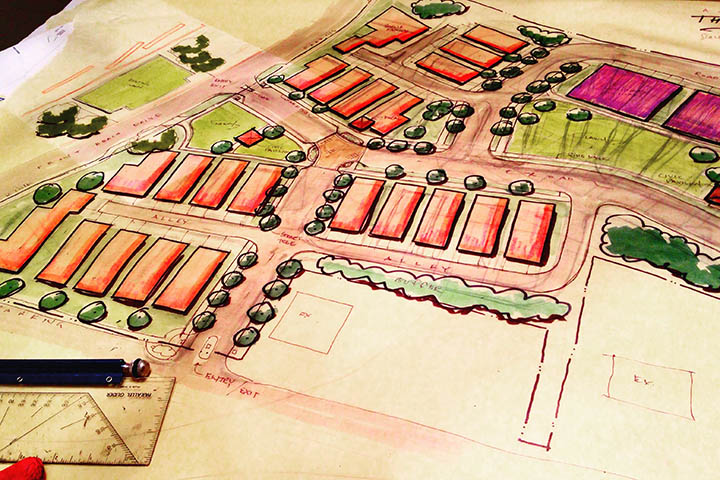 Our challenge to create a sense of community, while achieving the desired density was met head on with a creative master plan solution. We laid out the plan to appropriately address the surrounding streets, while creating a walkable environment within the community.