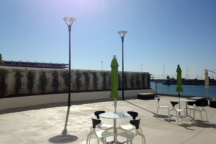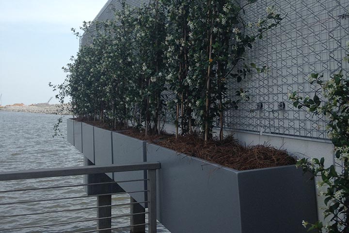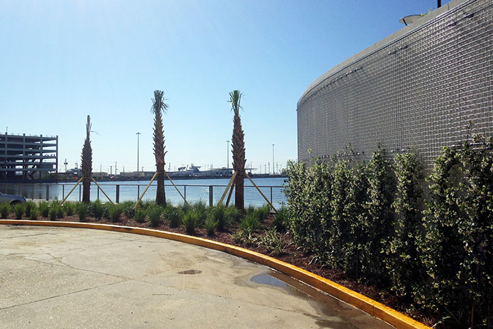 Clean white lines, Palms, and color changing lights bring a big city feel to the Beach Boulevard Corridor. Our design for the site had challenges in dealing with the coastal environment, shade, and over-water planters.
